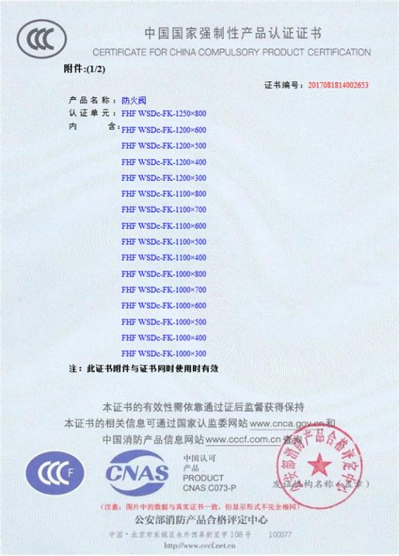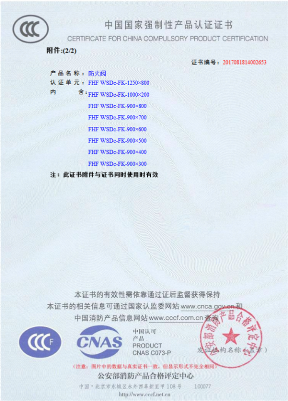 產(chǎn)品全通過(guò)國(guó)家消防檢測(cè)中心檢測(cè),獲得CCC證書(shū)